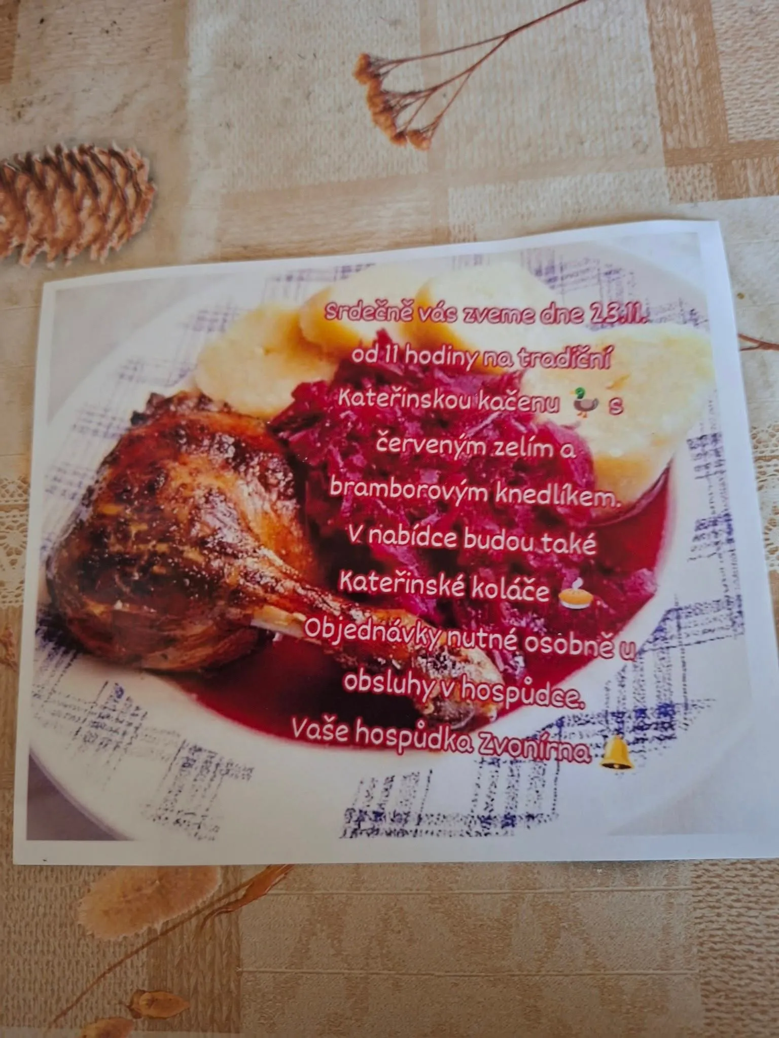 Milovníci tradiční české kuchyně by si měli v kalendáři poznačit datum 23. listopadu. Místní hospůdka Zvonírna na tento den srdečně zve všechny hosty na speciální sváteční menu.