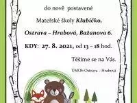 Zveme všechny občany do nově postavené Mateřské školy Klubíčko na den otevřených dveří, který se uskuteční v pátek 27.8. 2021 od 13 – 18 hod. Těšíme se na Vás!