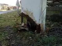 Skříňka se nachází na ulici U Kotelny. Původní skříňka byla nebezpečná pro okolí (viz foto), proto jsme se této záležitosti ujali. Po velmi dlouhém, dalo by se říci nekonečném pátrání po vlastníkovi skříňky, se nám konečně podařilo počátkem března kontaktovat pravého vlastníka (nebyl na skříňce štítek či cokoli, co by pomohlo navázat komunikaci s majitelem).