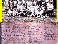 Archivní fotografie pochází dle mých poznámek ze sbírky Martina Hadámka a týká se pravděpodobně „ročníkového“ focení (1956/57) ještě před dřevěnou školou, která se nacházela vedle dnešní budovy úřadu v Hrabové.