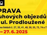 Od pondělí 23. června 2025 (00:00 h) do pátku 27. června 2025 (24:00 h), z důvodu opravy kruhových objezdů na ul. Prodloužené v Ostravě-Hrabové, dojde k odklonu autobusových linek č. 27, 35, 41, 48, 50, 55, 73, 74 a 77 po místních komunikacích.