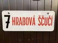 Možná jste si v předchozích dnech při procházce po Domovské ulici všimli, že historickou tramvaj Jana Kohoutka zdobí nová cedulka „HRABOVÁ ŠČUČÍ“ s číslem 7. Před týdnem ji tam pan Kohoutek na několik dnů vyvěsil a vysvětlil mi, že se kolemjdoucích často ptával, jaké číslo má na cedulku dát, takže už je rozhodnuto:-)