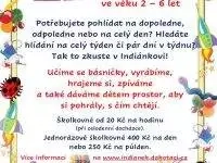 Dětská skupina Indiánek v Ostravě-Hrabůvce nabízí hlídání dětí (i těch z Hrabové!!!) ve věku 2-6 let. Hlídání na dopoledne, odpoledne nebo na celý den, celý týden, ale samozřejmě i jen na pár dní v týdnu. Školkovné od 20 Kč na hodinu (při celodenní docházce). Jednorázové školkovné 400 Kč na den nebo 250 Kč na půlden.