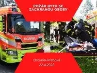 Při požáru bytu v Ostravě-Hrabové byla dne 22.4. 2023 zachráněna jedna osoba. Video je na Youtube: